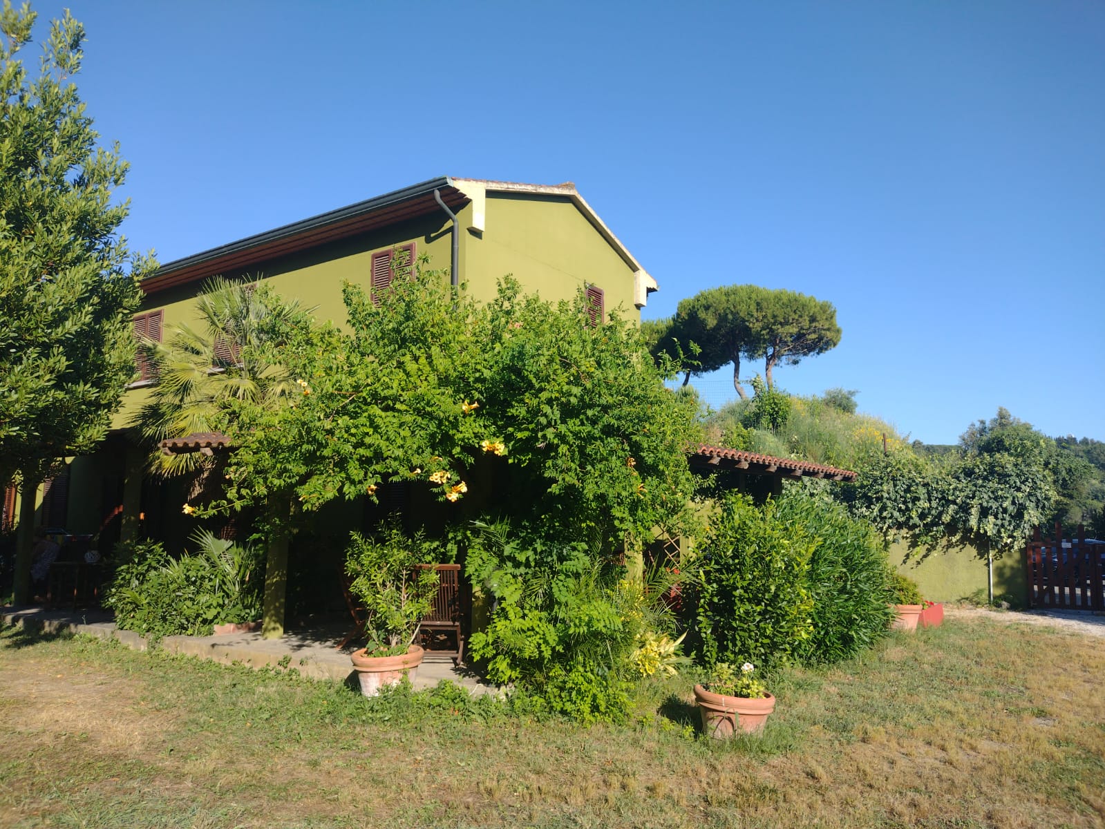 Green House, czyli Zielony Dom, to urocze miejsce położone na zboczu wzgórza w miejscowości Montescudaio w Toskanii, 15 minut drogi od Wybrzeża Etrusków. Dom jest skąpany w zieleni, otoczony dużym ogrodem i sąsiaduje z gajem oliwnym, który łagodnie schodzi w stronę morza. Jest to prawdziwa oaza spokoju, idealne miejsce dla osób chcących uciec od codziennego hałasu miasta i stresu. Wieczory zachwycają tu malowniczymi zachodami słońca, słychać koncerty cykad i ptaków.